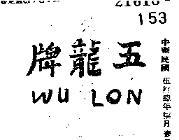 (文字:五龍牌、WU LON)