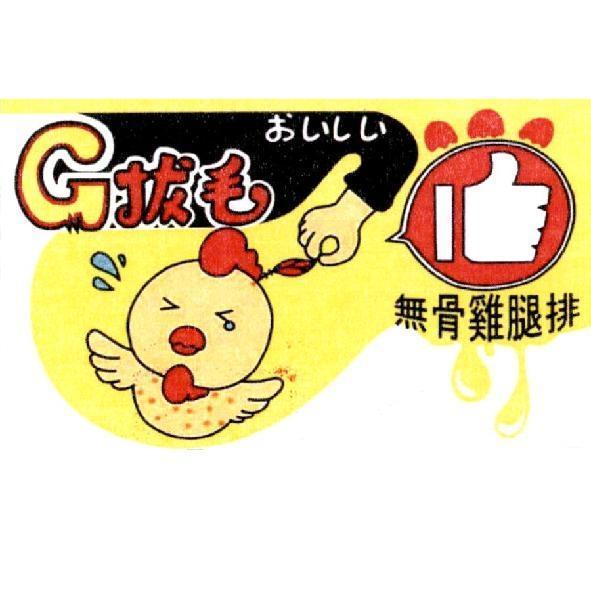 (文字:拔毛無骨雞腿排、G、おいしい)