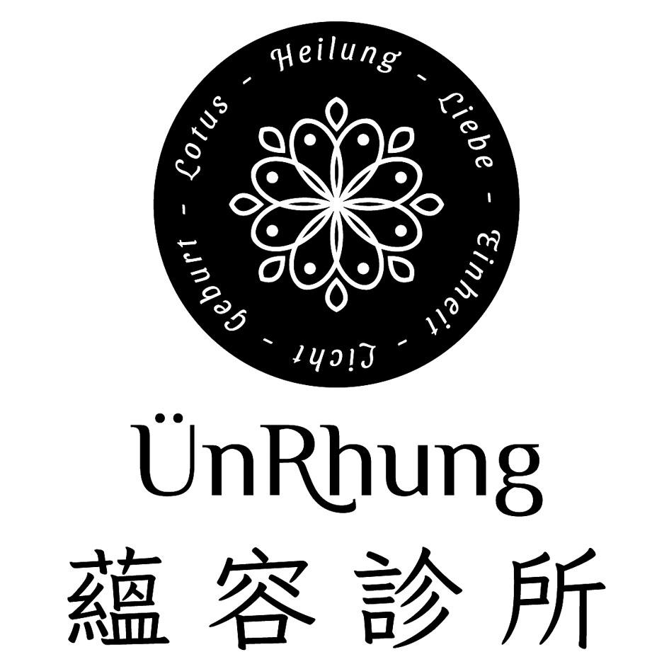(文字:蘊容診所、HEILUNG LIEBE EINHEIT LICHT GEBURT LOTUS UNRHUNG)