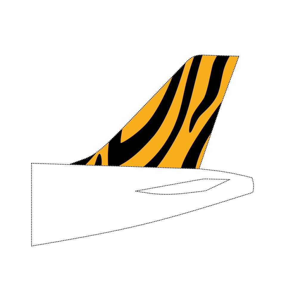 本件為位置商標,由以一定方式標示於飛機尾翼之橘色底、黑色曲線條組合所構成,虛線部份表示機身後段之形狀,不屬於商標之一部分。