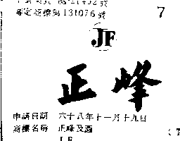 正峯及圖JF共 2 筆商標,1 筆分類